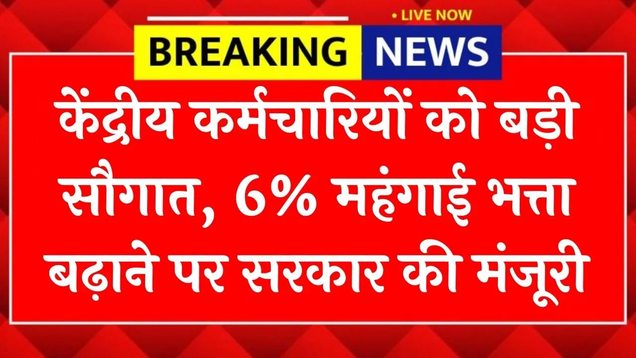DA Hike Today: केंद्रीय कर्मचारियों को बड़ी सौगात, 6% महंगाई भत्ता बढ़ाने पर सरकार की मंजूरी